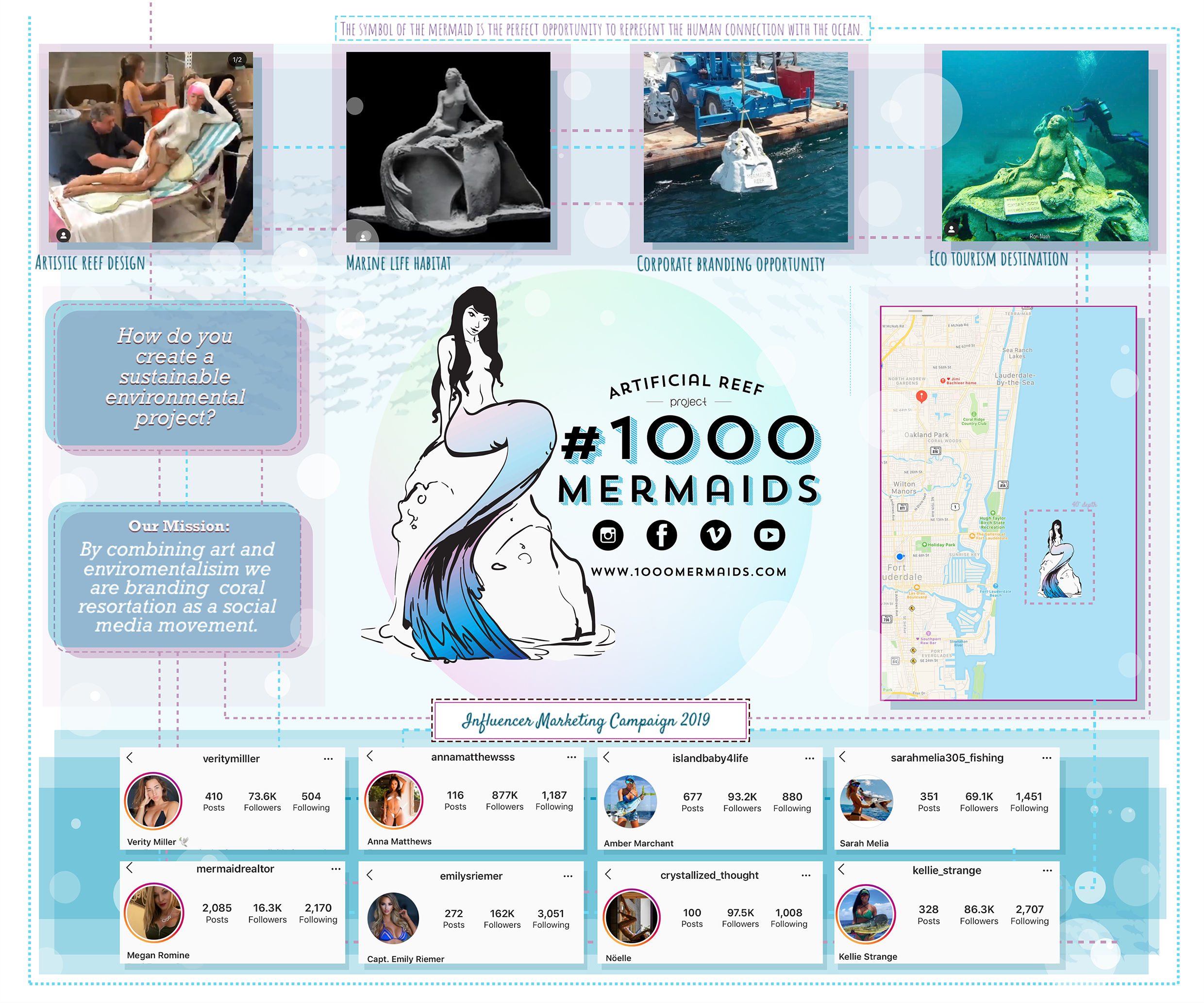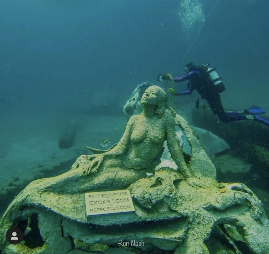 One of our first mermaid sculptures placed near Jupiter Beach, Florida. for the 1000 Mermaids Project. Click for dive coordinates.